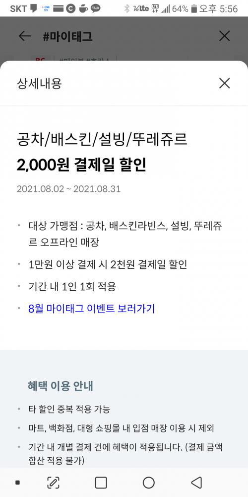 비씨카드 마이태그에서 2000원 태그 하시고