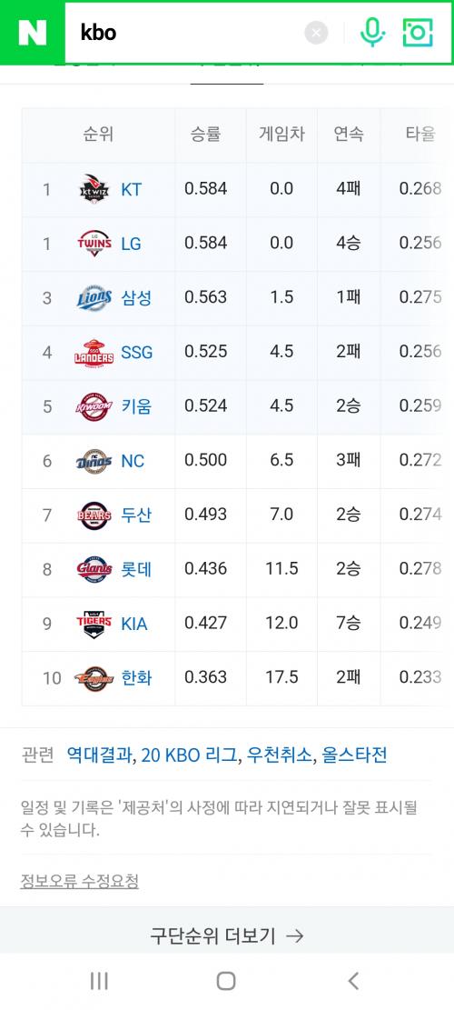4연패한 팀이 1위군요 | ||