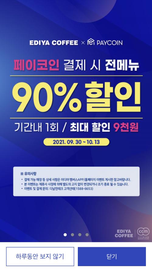 이디야에서 페이코인 결제시 90% 즉시할인이라서 다녀왔습니다