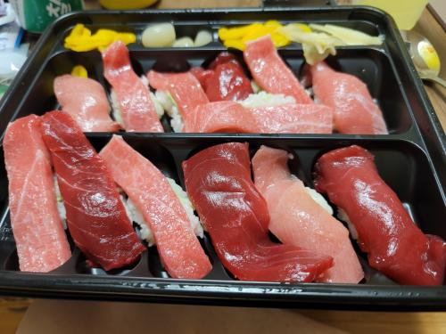그리고 저녁은 참치초밥이네요~ 며칠전에 한번 시키고(다른데고 참치회 전문점임) 오는 2차로 시켰네요~ 참치전문에서 만든 초밥이라 무지 맛있네요~~
