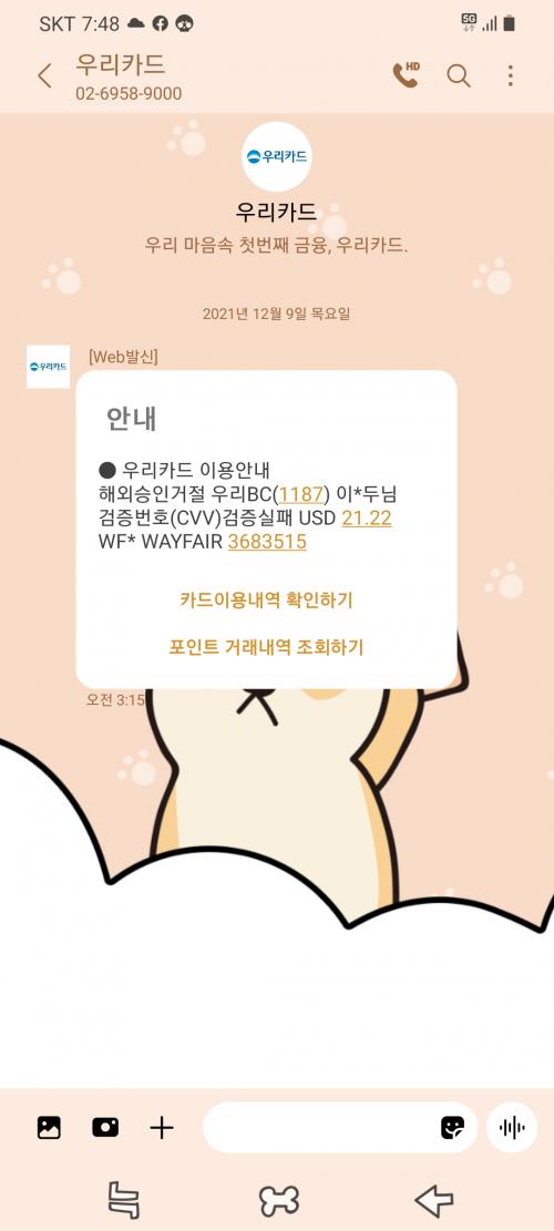 혹시 페이팔에 카드 결제 설정 걸어뒀나 확인해보세요. 저도 예전에 700불 결제 시도한적이 있습죠.. https://news.v.daum.net/v/20211209182210381 | ||