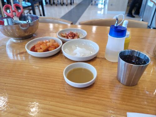 도착하고 나서 왕갈비탕하고 물냉면을 시켰는데 왕갈비살 일부를 냉면에 썰어 넣고 먹으면 갈비살이 쫄깃해지고 사각사각하여 맛이 나네요~