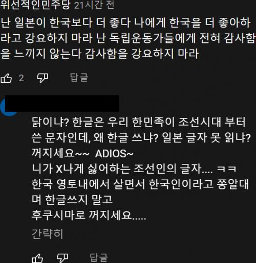 3.1절 KBS 다큐멘터리에 요따구 댓글 쓰고 있음.