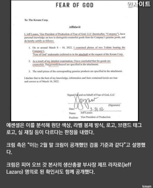 무신사가 100%정품 주장했던 에센셜티셔츠 본사에서는 짝퉁판정