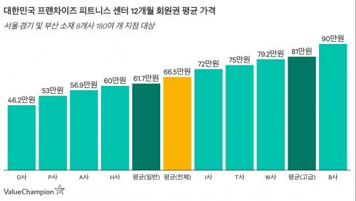 2022년 기준 프랜차이즈 헬스장 평균 가격이랍니다