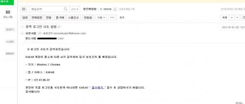 이젠 저렇게 오나보네요.. 이전에 로그인 시도알림을 받아본 적이 있던 거 같았는데.. 제대로 안 보면 진짜인가 싶겠는데요 | ||