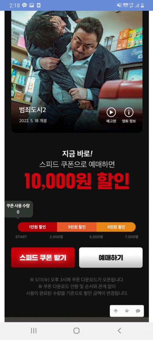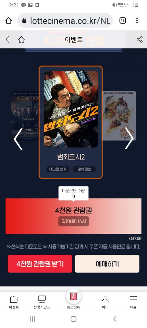롯데시네마에서 범죄도시2 오후 4시에 1만원 할인 선착순 7500명 있네요 > 자유게시판