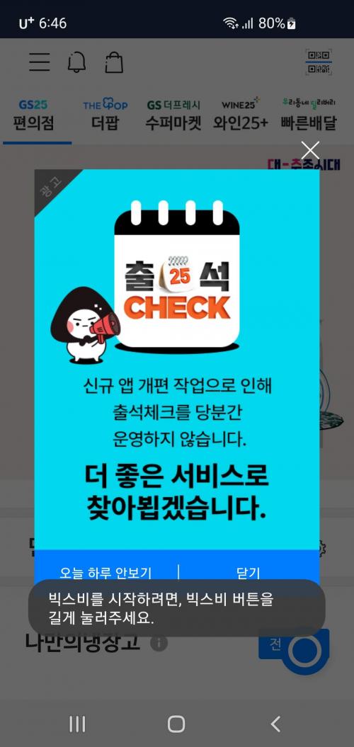 오늘 아침 일어나 앱 들어가봐도 출첵 이벤트가 안 보이길래, 1일이라 좀 늦어지나 싶었는데