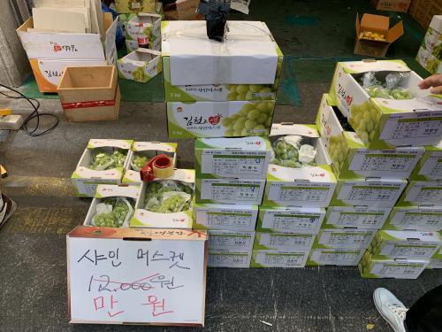 비싼 샤인머스켓 가격이 갑자기 폭락했더라구요.