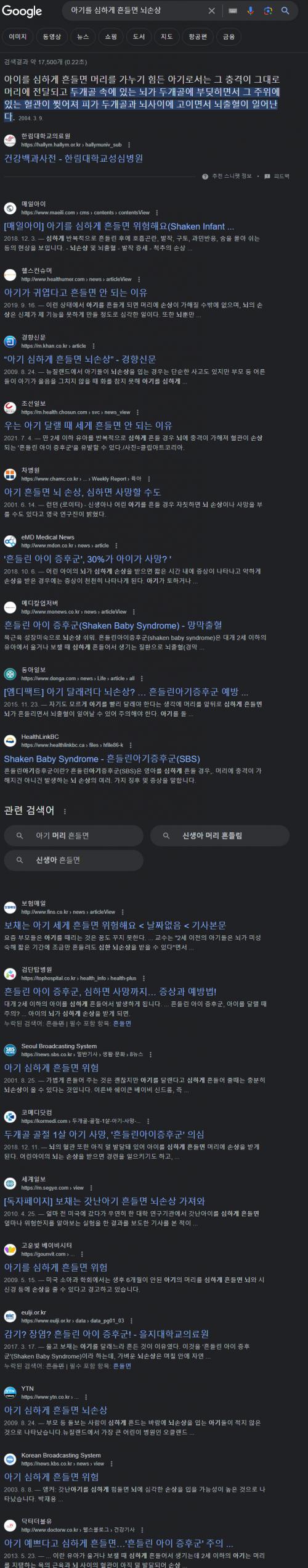 * 아기 흔들면 < 뇌 손상 > / 의학 News > 자유게시판