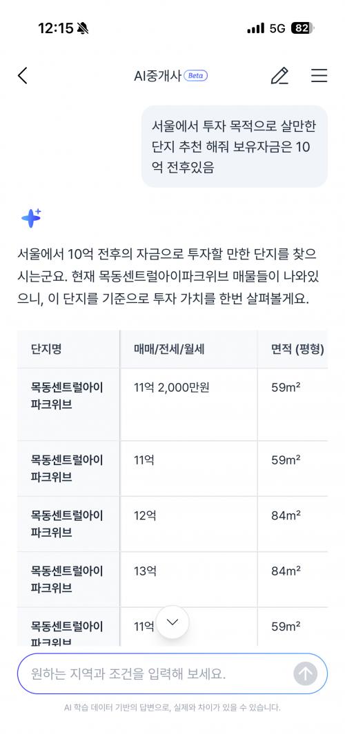 이름은 AI중개사라고 하는데 실거주 목적으로 아파트 단지 찾는 거 외