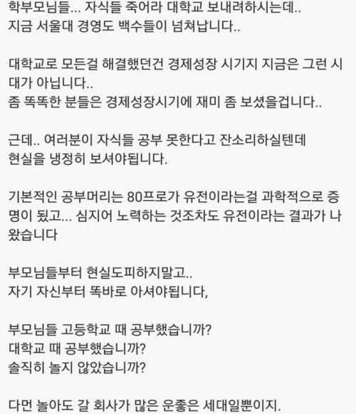 사교육 대부도 이런 말 하는데 아이들 의미없는 경쟁에 몰아놓고 힘들게 하지 마시길