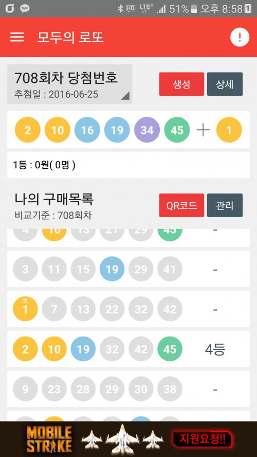 저는 4등될때 4개 맞고 2개는 하나씩 옆으로