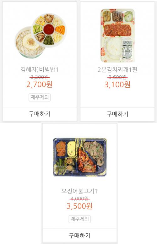 제 입맛에는 비빔밥, 김치찌개가 제일 맛있더군요. 전체 중에는 마이홍치킨이요. 이건 인기가 좋아서 그런지 할인을 안하네요. | ||