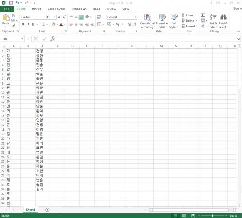 결국 돌림자는 포기하고 엑셀의 힘을 빌어 이름 뽑아보고 있습니다.