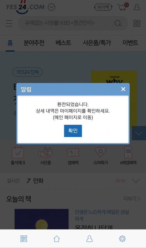 저두 어제 저렇게 뜨더라구요?! 그래서 환전하긴 했는데 무슨 이벤트 중인건가요? 5천원 이하인데 바꿔주다니@_@ | ||