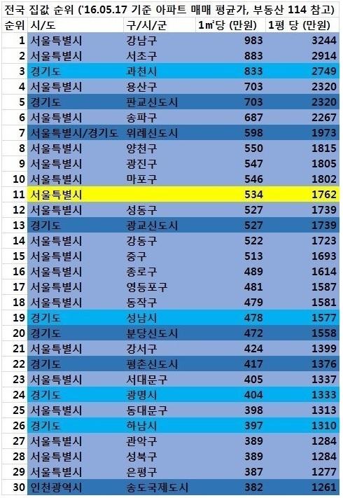 강남,신도시 빼고는 새아파트가 많은 지역이 상위권이네요 | ||
