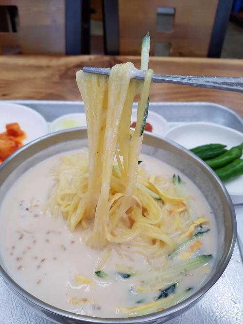 설탕콩국수는 시원한 팥죽 먹는 기분입니다. 나쁘지 않아요. | ||