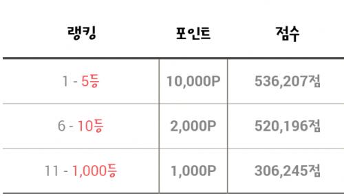 27일까지 1000등안에 들려면 50만점 넘어야 할거 같네요 재미삼아 해보세요