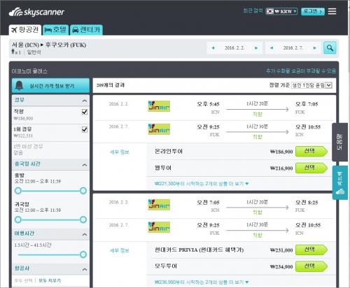 스카이 스캐너에서 항공권 가격만 보시고 따로 항공편 예약하시는게 저렴해요~ | ||