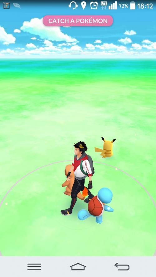 퇴근길에 처음에 튀어나오는 꼬부기, 파이리, 이상해씨 무시하고 500m정도 걸으니 피카츄가 튀어나오더군요