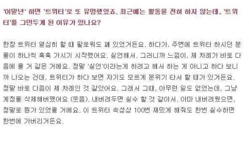 웹툰,일러계+트위터리안이 약간 트위터랑 자기들 자체사이트에서만 놀다보니 쉽게 휩쓸리는거같아요. 이말련이 말한거처럼 | ||