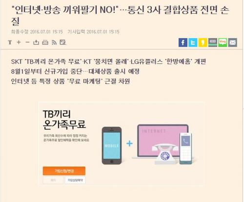 8월 1일부터 3사 인터넷 핸드폰 결합상품 손본답니다~