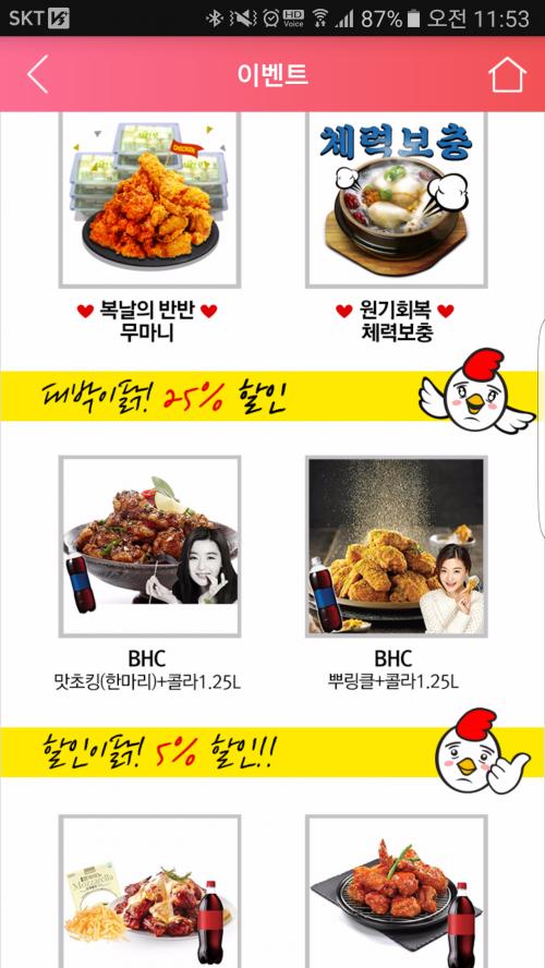 기프티콘 어플 메뉴에서 기념일 버튼 누르셔도 되고 BHC로 검색하셔도 됩니다.
