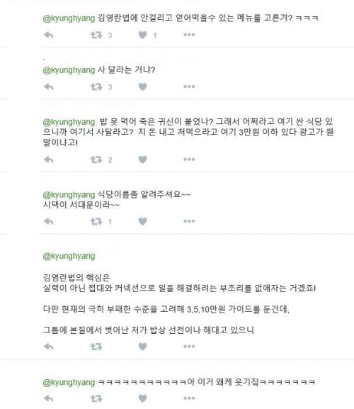 김영란 법이 시행되도 저정도로 먹을 수 있다는걸 알려주는걸까요 | ||