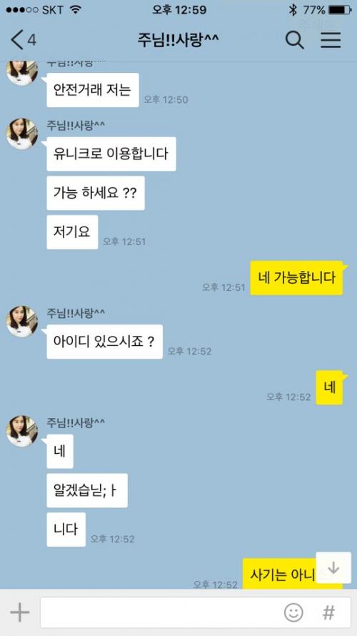 카톡 아이디 올린 거래자들은 다 패스하는 편이 속 편한거 같아요. | ||