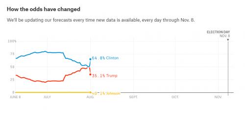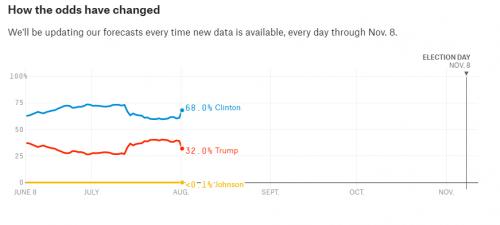 민주당 전당대회가 끝나고 트럼프가 또 한 번의 치명적인 자폭쇼를 하면서 급격하게 힐러리쪽으로 기울고 있다고 합니다.