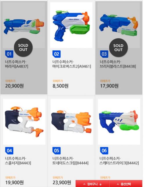 그래서 물총이 필요한데요 검색해보니 너프 물총이 핫한가보군요.