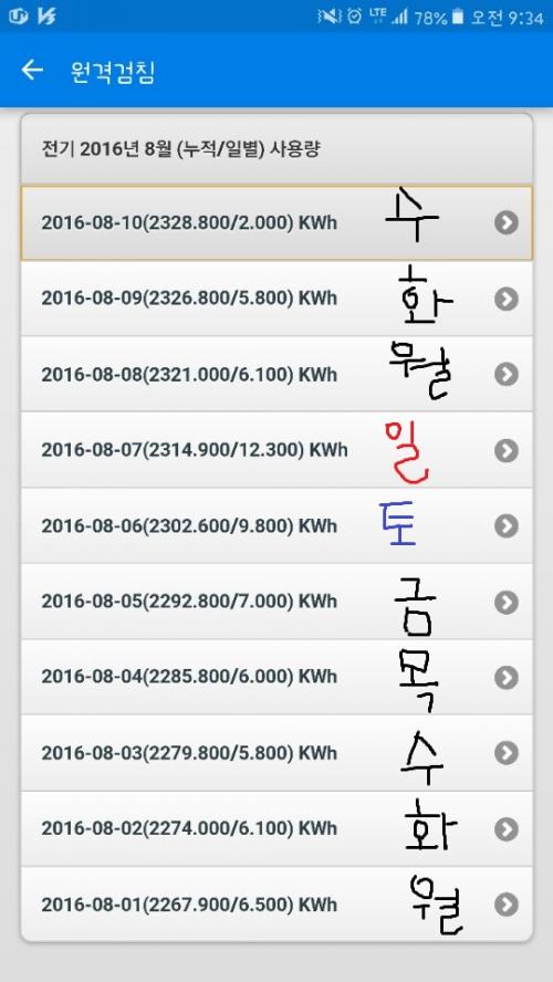 일요일 에어컨 4시간 가동