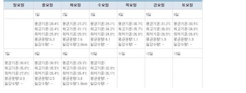 위 사진은 열흘전 서울 제 동네 중기예보로 미리 훑어본 대략적인 기온이고,