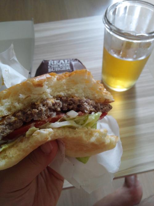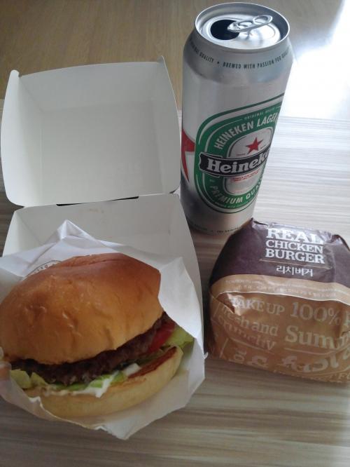 비슷한 버거와 비교하자면 아재버거는 한입 물면 치즈와퍼에서 오는 맛이 나고요. 리치버거는 KFC 징거버거보다 맛있네요. 패티가 닭다리살 튀김이라 쫄깃하고 맛있어요. 버거 두개에 하이네켄 깔끔하게 먹었네요ㅋㅋㅋ