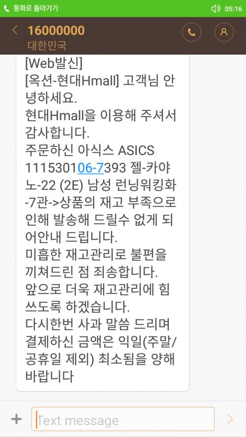 오늘에서야 재고 없다고 문자한통 띡보내네요