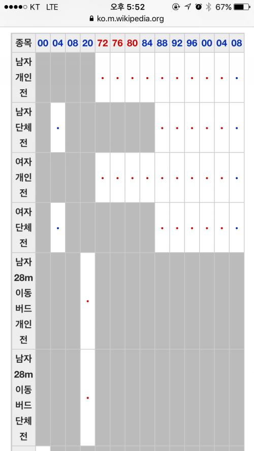 88올림픽때는...분명히 거리별로도 있었습니다...남, 여, 혼성까지...그 때 국딩 5학년 때인데 반 뒤편에...메달집계표에 스티커 붙이는데...양궁 칸이...최소한 지금보다는 많았던 것 같은데...88이 일시적인거였으려나요? (글 약간 수정...ㅎ) | ||