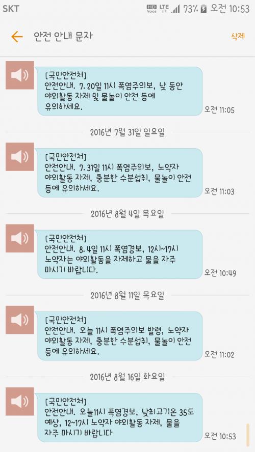 전 재난문자안오게 설정해놔서.. 이제 안옵니다.. 새벽에 미친 싸이렌소리에 경기할뻔.. | ||