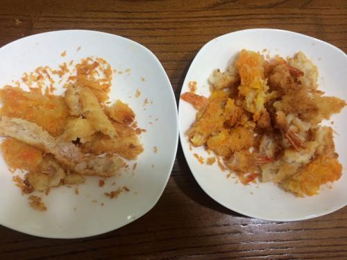 튀김껍질에 달라붙어 안 떨어지는 거 낑낑대며 다 떼어냈다는... | ||
