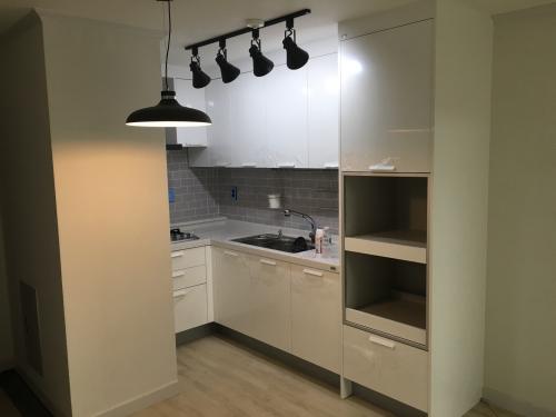 말씀하신대로 깔끔하고 이쁜데 동선이 좀 요리하기 힘들어 보여요.