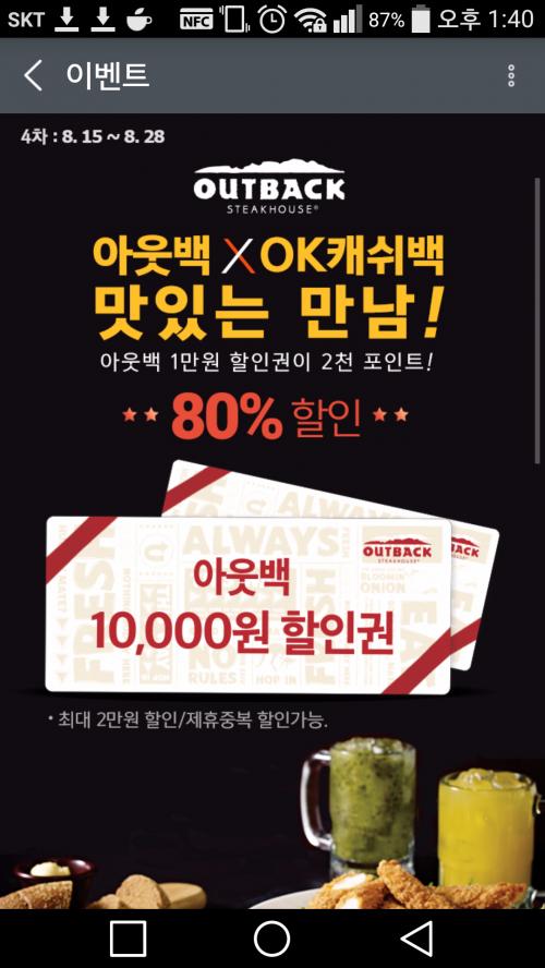 티페이 쿠폰 적용 안되는거 아닌가요?? 원래 토욜에 가려고 예약잡아두고 오케이캐쉬백 충전해서 쿠폰 사놨는데... 티페이 행사까지 걸려서 헬일것 같은 생각은 듭니다... 근데 아무래도 중복 적용이 안될것 같은데.. 됐음 좋겠네요 | ||