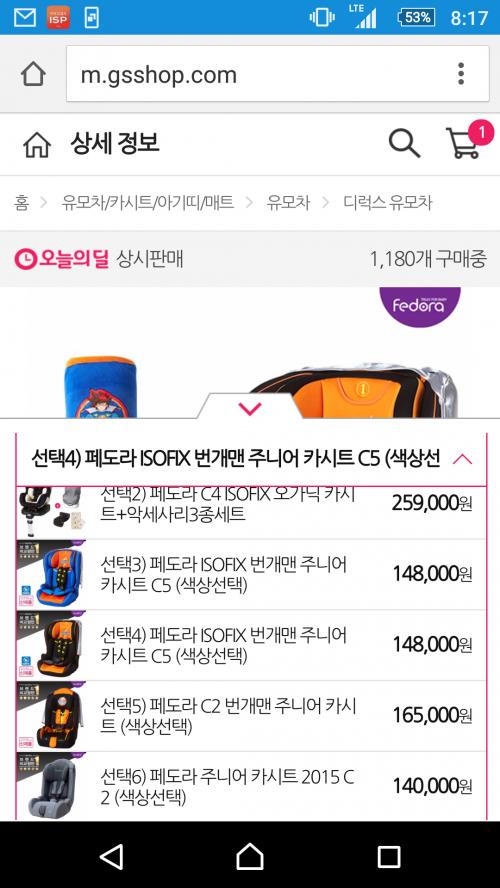 Gs shop에서 페도라 c5 번개맨 모델을 148,000에 판매하고 있습니다.(번개맨 쿠션벨트 증정, 9개월~12세사용가능,isofix)