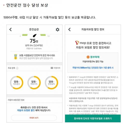 T맵에 운전습관 기능이 있는데 이거 동의하고 61점 이상 얻으면