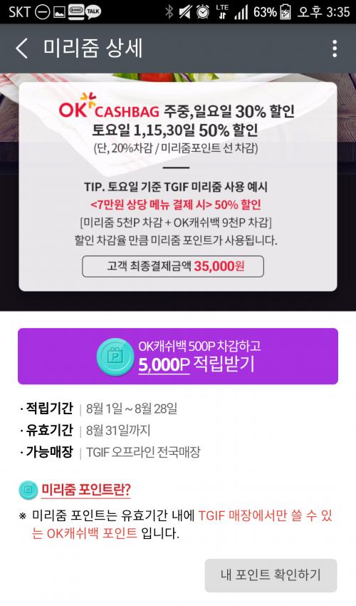 미리줌은 ok캐시백 어플에서 받으시면되는거고(8월28일까지 500p->5000p)