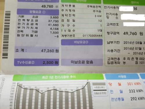 저도 7월전기세 1kwh 초과해서 101kwh요금냈는데 .약간속상하던;;; | ||