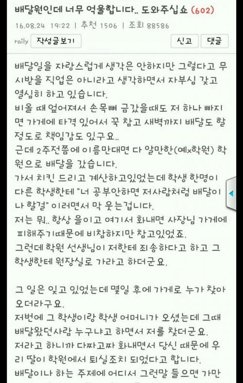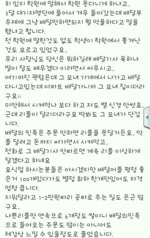 실제로 친구가게도와주면서 배달 몇번 해줬는데 별사람 다있어서 인터넷 이야기 다 믿게 되더라구요