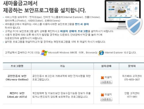 보안프로그램 설치안내 < 새마을금고 개인인터넷뱅킹 [PB3301]