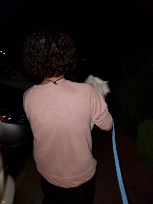 미친 듯 달려가 뽀뽀 받고 꼬리가 없어집니다.