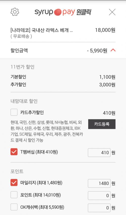 시럽 페이로 원 클릭 결제할 때와 그냥 수동 주문 눌러 쿠폰 적용 및 결제 진행할 때와 가격이 서로 달라요
