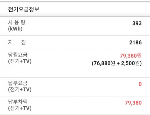 저희집도 393kwh 썼네요. 요금은 200원 정도 차이 나네요